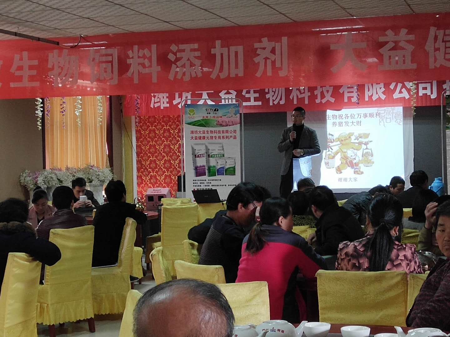此次座談會(huì)針對(duì)滄州地區(qū)的市場(chǎng)行情和養(yǎng)殖朋友的現(xiàn)實(shí)狀況,為大家全面解析了在市場(chǎng)動(dòng)蕩、行情低迷的情況下,如何利用現(xiàn)有的資源提高飼料的利用率、提升豬肉品質(zhì)、降低養(yǎng)殖成本,讓養(yǎng)殖朋友能更好的養(yǎng)豬。 首先上場(chǎng)演講的是研發(fā)部主任,主講微生態(tài)產(chǎn)品的原理和在養(yǎng)殖過程中對(duì)豬所能產(chǎn)生的各種作用功效,如何為養(yǎng)殖朋友們降低成本,提高收益。