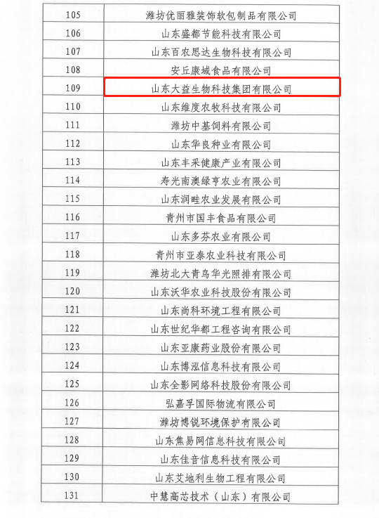 恭喜!山東大益生物科技集團(tuán)公司榮獲“2022年濰坊市隱形冠軍”企業(yè)稱(chēng)號(hào)